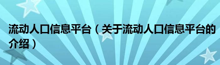 流动人口信息平台(关于流动人口信息平台的介绍)