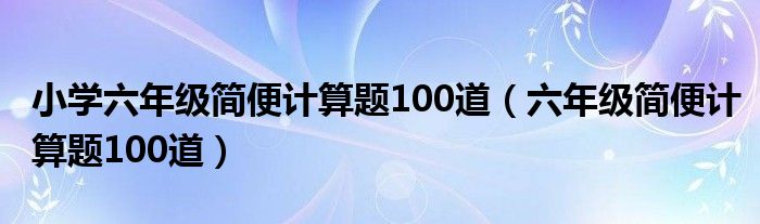 小学六年级简便计算题100道(六年级简便计算题100道)