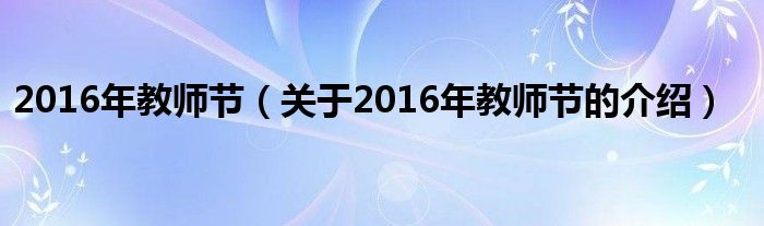 大家好,今天小乐来为大家解答以上的问题。2016年教师节,关于2016年教师节的介绍很多人还不知道,现在让我们一起来看看吧!