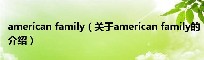 大家好,小都来为大家解答以上的问题。american family,关于american family的介绍很多人还不知道,现在让我们一起来看看吧!