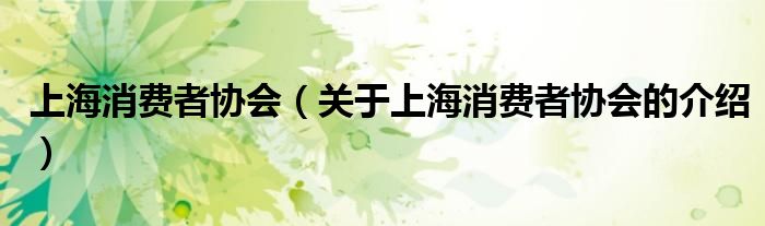 上海消费者协会(关于上海消费者协会的介绍)