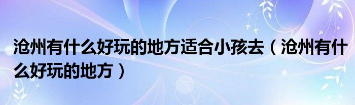 关于沧州有什么好玩的地方适合小孩去,沧州有什么好玩的地方这个很多人还不知道,今天菲菲来为大家解答以上的问题,现在让我们一起来看看吧!