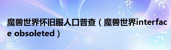 关于魔兽世界怀旧服人口普查,魔兽世界interface obsoleted这个很多人还不知道,今天菲菲来为大家解答以上的问题,现在让我们一起来看看吧!