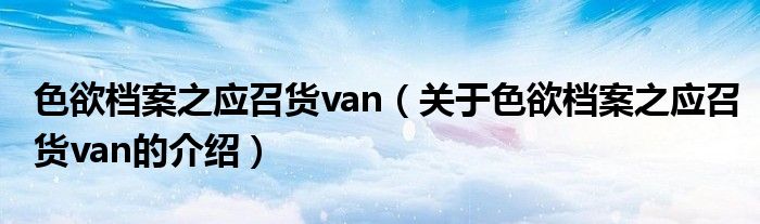 大家好,小都来为大家解答以上的问题。色欲档案之应召货van,关于色欲档案之应召货van的介绍很多人还不知道,现在让我们一起来看看吧!