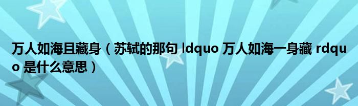 关于万人如海且藏身,苏轼的那句 ldquo 万人如海一身藏 rdquo 是什么意思这个很多人还不知道,今天菲菲来为大家解答以上的问题,现在让我们一起来看看吧!