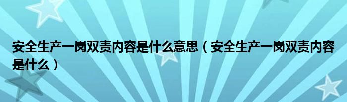 安全生产一岗双责内容是什么意思(安全生产一岗双责内容是什么)