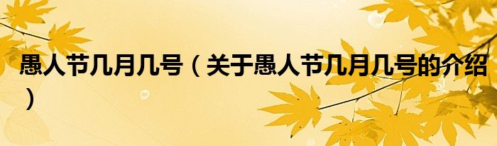 大家好,小都来为大家解答以上的问题。愚人节几月几号,关于愚人节几月几号的介绍很多人还不知道,现在让我们一起来看看吧!