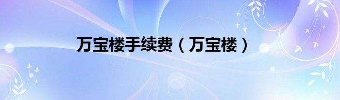 关于万宝楼手续费,万宝楼这个很多人还不知道,今天菲菲来为大家解答以上的问题,现在让我们一起来看看吧!