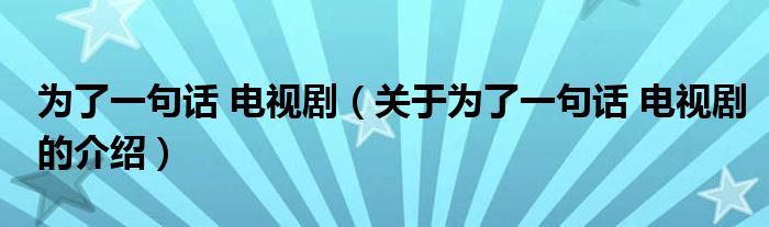 大家好,小都来为大家解答以上的问题。为了一句话 电视剧,关于为了一句话 电视剧的介绍很多人还不知道,现在让我们一起来看看吧!