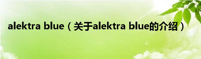 alektra blue(关于alektra blue的介绍)