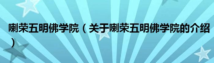 喇荣五明佛学院(关于喇荣五明佛学院的介绍)