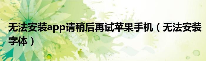 大家好,小飞来为大家解答以上问题,无法安装app请稍后再试苹果手机,无法安装字体很多人还不知道,现在让我们一起来看看吧!
