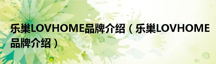 大家好,小源来为大家解答以上问题。乐巢LOVHOME品牌介绍,乐巢LOVHOME品牌介绍很多人还不知道,现在让我们一起来看看吧!