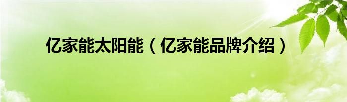 大家好,小源来为大家解答以上问题。亿家能太阳能,亿家能品牌介绍很多人还不知道,现在让我们一起来看看吧!