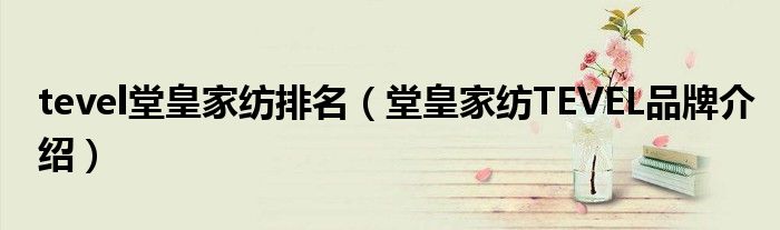 大家好,小源来为大家解答以上问题。tevel堂皇家纺排名,堂皇家纺TEVEL品牌介绍很多人还不知道,现在让我们一起来看看吧!