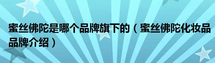 大家好,小源来为大家解答以上问题。蜜丝佛陀是哪个品牌旗下的,蜜丝佛陀化妆品品牌介绍很多人还不知道,现在让我们一起来看看吧!