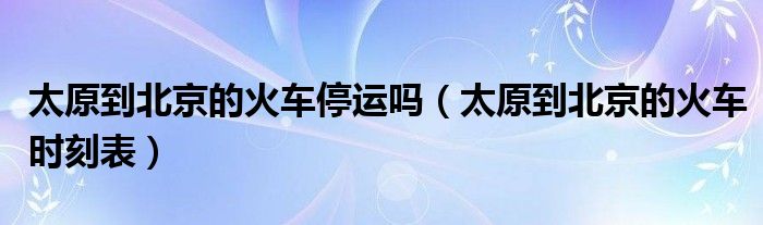 太原到北京的火车停运吗,太原到北京的火车时刻表这个很多人还不知道,小飞来为大家解答以上的问题。现在让我们一起来看看吧!
