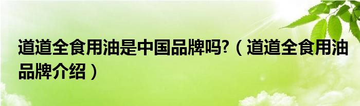 大家好,小源来为大家解答以上问题。道道全食用油是中国品牌吗?,道道全食用油品牌介绍很多人还不知道,现在让我们一起来看看吧!