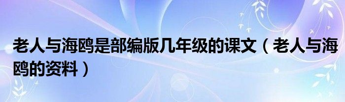 老人与海鸥是部编版几年级的课文,老人与海鸥的资料这个很多人还不知道,小飞来为大家解答以上的问题。现在让我们一起来看看吧!