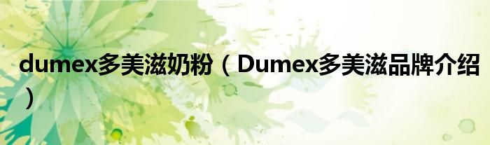 大家好,小源来为大家解答以上问题。dumex多美滋奶粉,Dumex多美滋品牌介绍很多人还不知道,现在让我们一起来看看吧!
