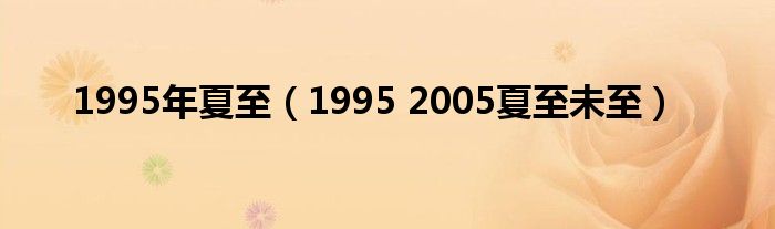 大家好,小飞来为大家解答以上的问题。1995年夏至,1995 2005夏至未至这个很多人还不知道,现在让我们一起来看看吧!