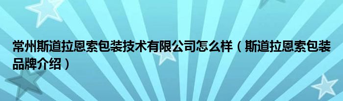 常州斯道拉恩索包装技术有限公司怎么样(斯道拉恩索包装品牌介绍)