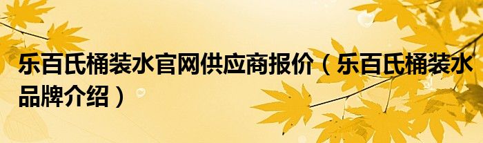 大家好,小源来为大家解答以上问题。乐百氏桶装水官网供应商报价,乐百氏桶装水品牌介绍很多人还不知道,现在让我们一起来看看吧!