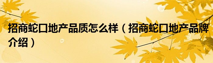 大家好,小源来为大家解答以上问题。招商蛇口地产品质怎么样,招商蛇口地产品牌介绍很多人还不知道,现在让我们一起来看看吧!