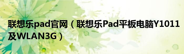 大家好,小常来为大家解答以上问题。联想乐pad官网,联想乐Pad平板电脑Y1011及WLAN3G很多人还不知道,现在让我们一起来看看吧!
