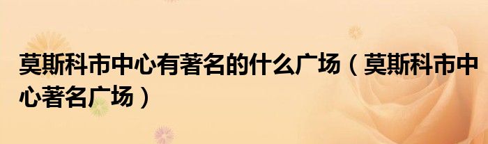 大家好,小晋来为大家解答以下问题,关于莫斯科市中心有著名的什么广场,莫斯科市中心著名广场很多人还不知道,今天让我们一起来看看吧!