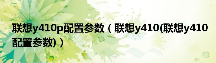1.尊敬的联想用户您好:联想y410配置如下:处理器第四代智能英特尔酷睿 i7 处理器Haswell 四核处理器i7-4700MQ (4 GHz,可睿频至4 GHz)操作系统Windows 8 中文版内存4G DDR3硬盘海量1TB HDD硬盘光驱超级DVD刻录显示屏10",16:9黄金比例,LED背光显卡NVIDIA 28NM制程高性能GeForce GT 755M大型游戏级显卡显示内存2G GDDR5键盘联想高触感巧克力键盘视频输出HDMI高清输出接口摄像头HD720p自适应环境光摄像头声音系统JBL专业品牌音响,杜比认证音效网卡100M/1000M网卡标准接口1个USB0接口,2个USB0接口电源100~240V宽电压电源适配器电池类型高性能6芯锂离子电池尺寸350mm x 245mm x 15-33mm重量5kg(含有6芯电池,具体重量依据产品出货配置为准)详情可以通过下面的官网连接查询相关配置以及价格信息。