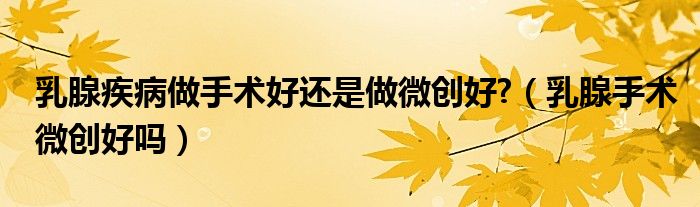 大家好,linda来为大家解答以上的问题。乳腺疾病做手术好还是做微创好?,乳腺手术微创好吗很多人还不知道,现在让我们一起来看看吧!
