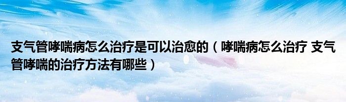 大家好,linda来为大家解答以上的问题。支气管哮喘病怎么治疗是可以治愈的,哮喘病怎么治疗 支气管哮喘的治疗方法有哪些很多人还不知道,现在让我们一起来看看吧!