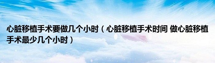 大家好,linda来为大家解答以上的问题。心脏移植手术要做几个小时,心脏移植手术时间 做心脏移植手术最少几个小时很多人还不知道,现在让我们一起来看看吧!