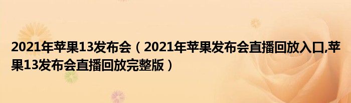 2021年苹果13发布会(2021年苹果发布会直播回放入口,苹果13发布会直播回放完整版)