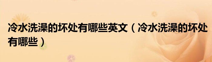 大家好,linda来为大家解答以上的问题。冷水洗澡的坏处有哪些英文,冷水洗澡的坏处有哪些很多人还不知道,现在让我们一起来看看吧!