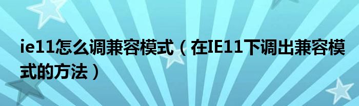 ie11怎么调兼容模式(在IE11下调出兼容模式的方法)