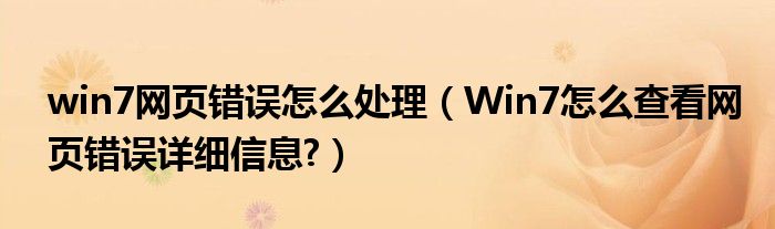 大家好,今天小悦来为大家解答以上问题。win7网页错误怎么处理,Win7怎么查看网页错误详细信息?很多人还不知道,现在让我们一起来看看吧!