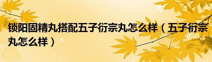 锁阳固精丸搭配五子衍宗丸怎么样(五子衍宗丸怎么样)