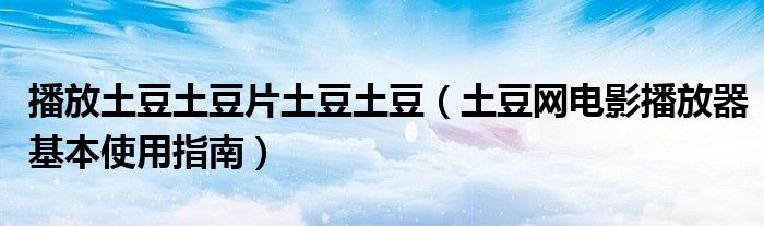 播放土豆土豆片土豆土豆(土豆网电影播放器基本使用指南)