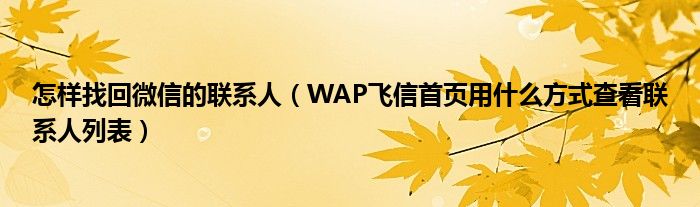 大家好,今天小悦来为大家解答以上问题。怎样找回微信的联系人,WAP飞信首页用什么方式查看联系人列表很多人还不知道,现在让我们一起来看看吧!