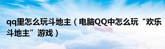 大家好,今天小悦来为大家解答以上问题。qq里怎么玩斗地主,电脑QQ中怎么玩“欢乐斗地主”游戏很多人还不知道,现在让我们一起来看看吧!