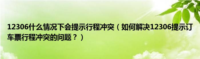 大家好,今天小悦来为大家解答以上问题。12306什么情况下会提示行程冲突,如何解决12306提示订车票行程冲突的问题?很多人还不知道,现在让我们一起来看看吧!