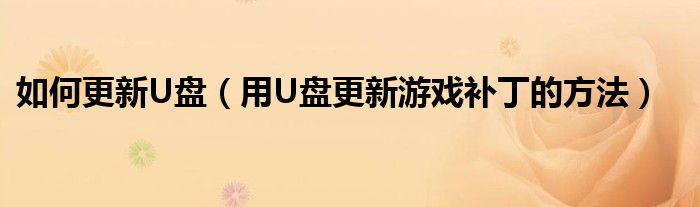 如何更新U盘(用U盘更新游戏补丁的方法)