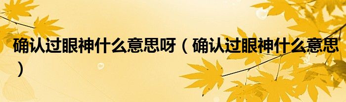 确认过眼神什么意思呀(确认过眼神什么意思)
