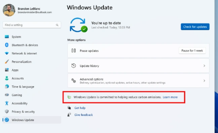 用户始终可以通过导航到“设置”>“Windows更新”并选择“检查更新”来选择立即安装更新。仅当您的PC已插入电源并且我们的合作伙伴powerMap或WattTime提供区域碳强度数据时,此功能才会启用。如果启用,用户将在Windows更新设置页面上看到下面显示的文本。我们仍在处理文本链接到的内容——请继续关注未来的更新。”