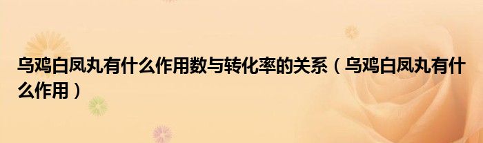 大家好,linda来为大家解答以上的问题。乌鸡白凤丸有什么作用数与转化率的关系,乌鸡白凤丸有什么作用很多人还不知道,现在让我们一起来看看吧!