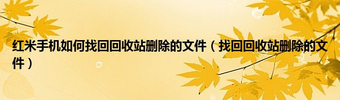 红米手机如何找回回收站删除的文件(找回回收站删除的文件)