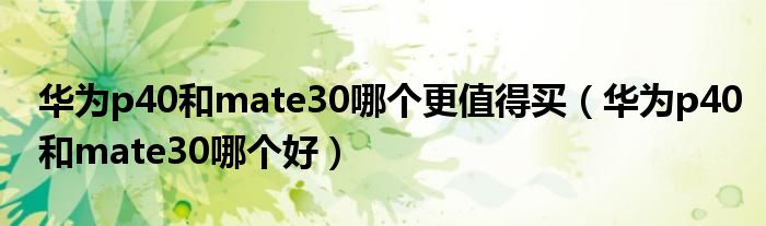 大家好,雨雨来为大家解答以上问题,华为p40和mate30哪个更值得买,华为p40和mate30哪个好很多人还不知道,现在让我们一起来看看吧!