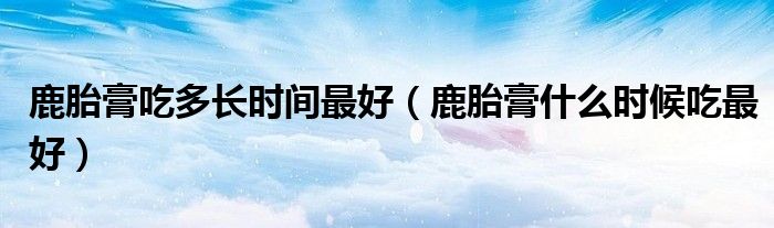 大家好,linda来为大家解答以上的问题。鹿胎膏吃多长时间最好,鹿胎膏什么时候吃最好很多人还不知道,现在让我们一起来看看吧!
